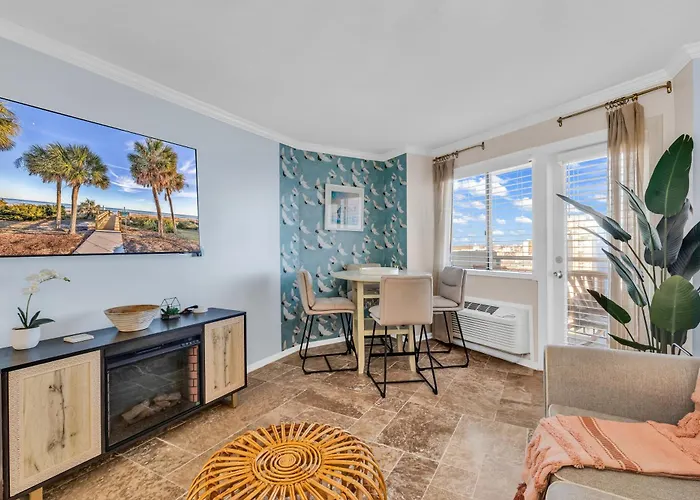 The beachfront 1-bedroom Bluewater Resort 1204 is located 16 minutes on foot from Jurassic Mini Golf and offers Wi-Fi for either business or leisure. Guests can benefit from a hot tub, a sauna, and an indoor pool while staying very close to Midway Park.